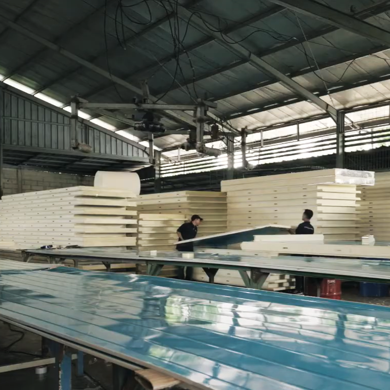 Material isolasi peredam suhu berupa PUR atau PIR yang dapat kami produksi sendiri. Dengan ketebalan diantaranya 50 mm, 75 mm, 100 mm, 125 mm, 150 mm dengan plat skin : BlueScope AZ070, AZ100, AZ150 , AZ180, AZ275. Beberapa keunggulan plat produksi kami :